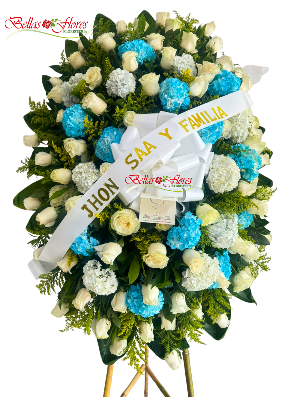 Paz Celestial Corona Fúnebre en Blanco y Azul